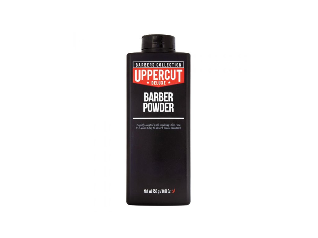 Uppercut Deluxe Barber Powder prášok po holení upokojuje citlivú pokožku bez mastenca. Má sviežu modernú vônu klasického čaju Bay Rum s nádychom klinčekov. Tento biely prášok najvyššej kvality je vytvorený na báze kukurice a kaolínu a neobsahuje mastenec. Absorbuje tuk a vlhkosť bez podráždenia pokožky alebo očí.